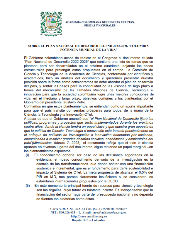 SOBRE EL PLAN NACIONAL DE DESARROLLO-PND 2022-2026 ‘COLOMBIA POTENCIA MUNDIAL DE LA VIDA’
