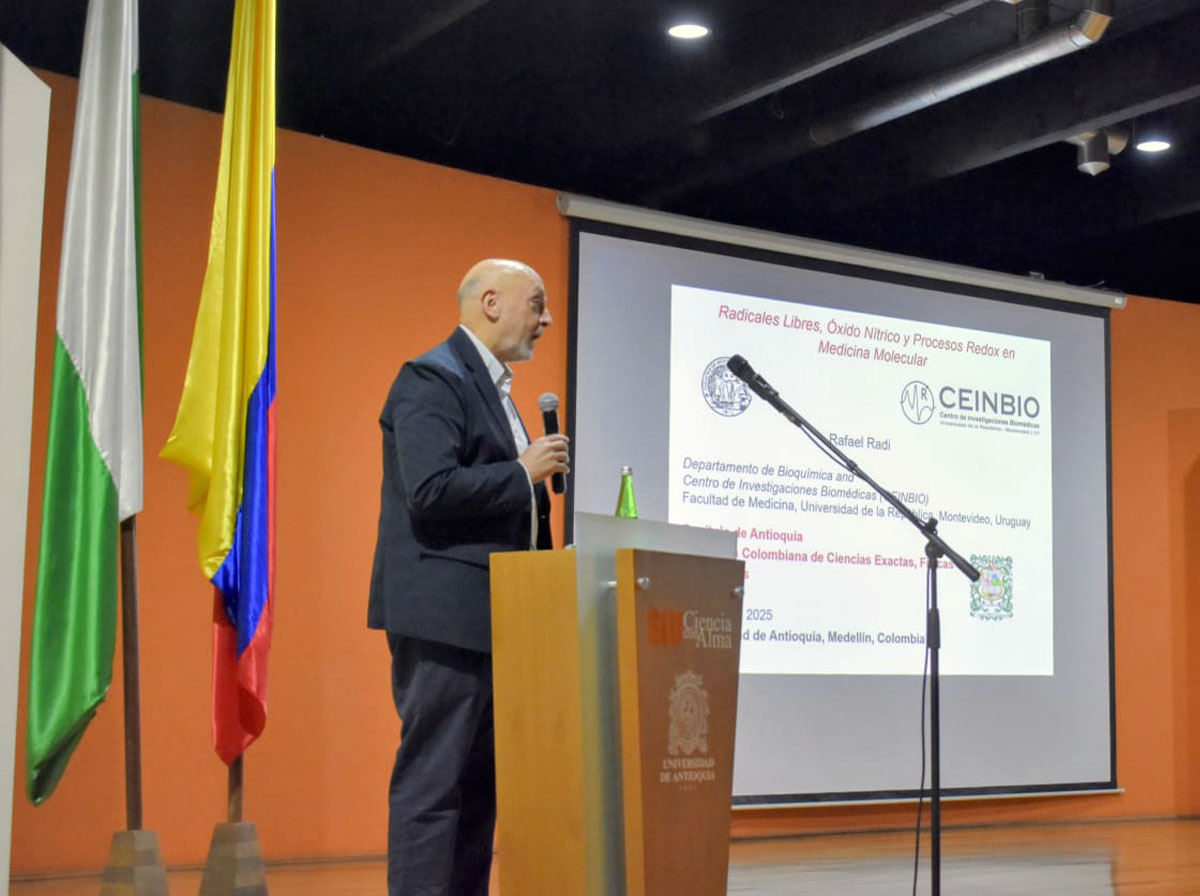 El 26 de junio El Capítulo de Antioquia de la Academia Colombiana de Ciencias Exactas, Físicas y Naturales con el apoyo de la Universidad de Antioquia llevaron a cabo la Conferencia “Radicales Libres, Óxido Nítrico y Procesos Redox en Medicina Molecular” impartida por el Dr. Rafael Radi, miembro Honorario de la Academia en el Auditorio Principal de la Sede de Investigación Universitaria (SIU) de la Universidad de Antioquia en la ciudad de Medellín.