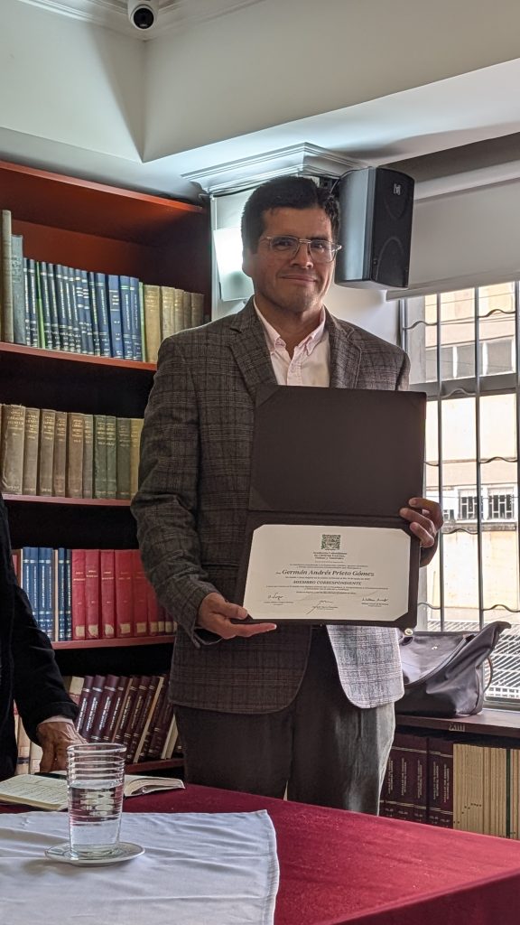 El jueves 26 de marzo en la sede de la Academia, se llevó a cabo la ceremonia de posesión como miembros correspondientes de los Dres. German Andrés Prieto (Geólogo) y Juan Gabriel Ramírez (Físico). Para la ocasión los nuevos académicos dictaron las conferencias tituladas: